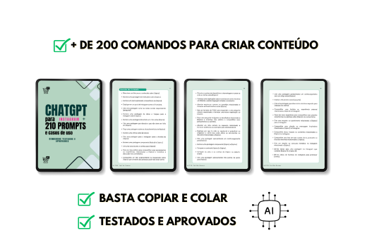 Com esse bônus, você vai ter centenas de comandos prontos para gerar ideias de posts, legendas, reels, títulos e até anúncios — tudo com poucos cliques.