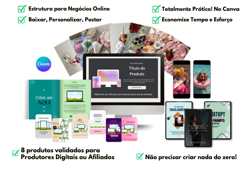 Tudo pronto para você baixar e usar agora — modelos editáveis no Canva, criativos validados e materiais profissionais sem precisar começar do zero.
